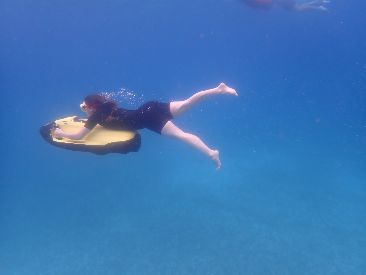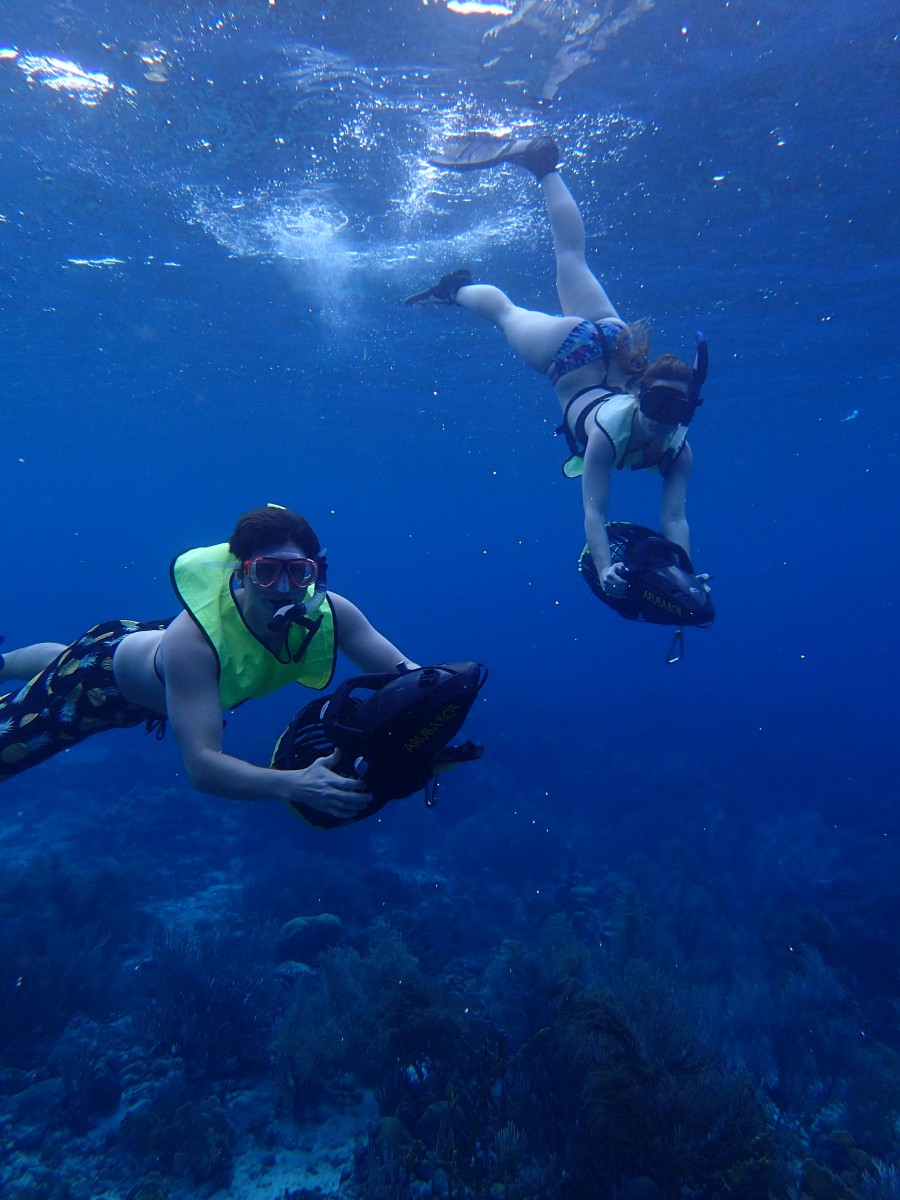 The best part of seabobbing? You aren’t exhausted at the end. The Seabobs do all the work for you and can even go up to 12 mph and 131 feet deep.